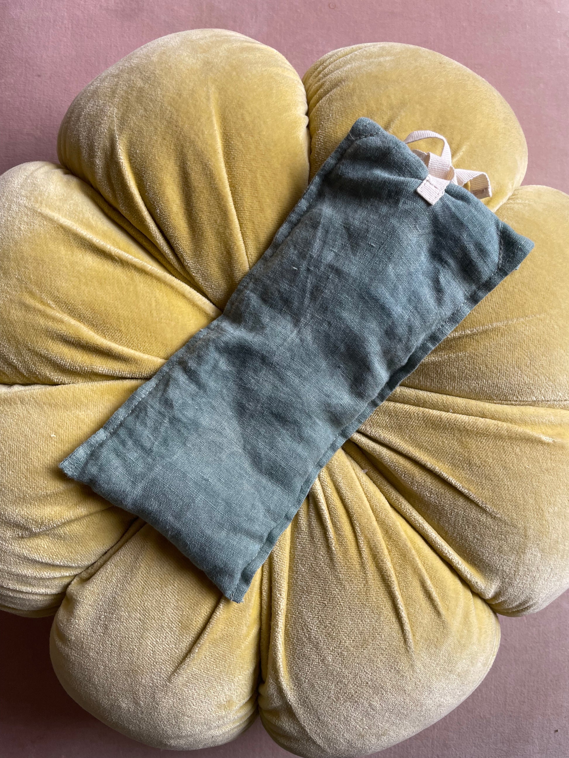 Botanically dyed 100% linen eye pillow using scabious flowers to produce a beautiful green hue. To retain its colour please wash by hand using a delicate hand wash liquid. The internal pouch containing linseeds can be removed.